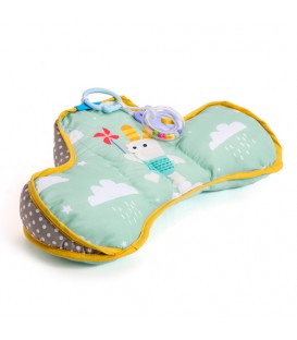 Taf Toys Tummy Time Trainer is a unique Tummy-time toy for Newborns and up. A round hoop that circles baby & provides them with plenty of activities to encourage practicing tummy-time positioning while playing.