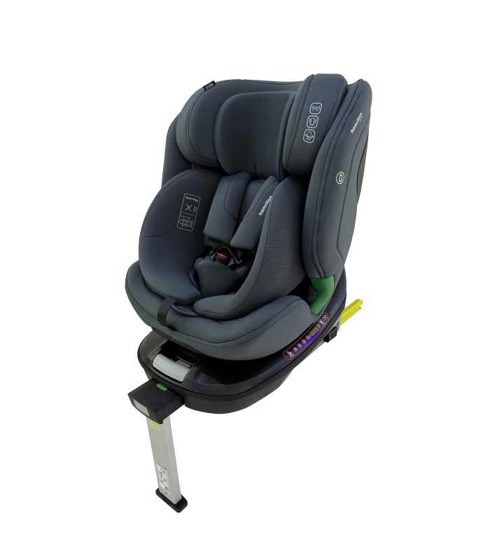Effortless 360° rotation with EASY SPIN SYSTEM for quick, safe buckling. ISOFIX and support leg ensure stability. Suitable from birth to 12 years, with rearward-facing travel up to 4 years. Adjustable headrest and recline grow with your child, delivering comfort, safety, and convenience for every journey.