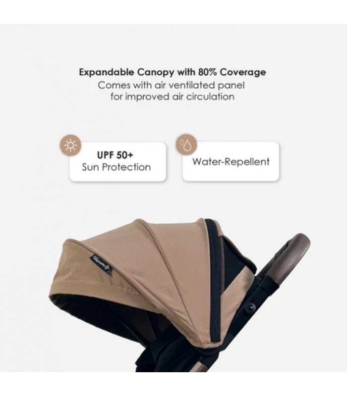 Longer canopy design with UPF 50+ – Extended coverage to shield your child from harmful UV rays.