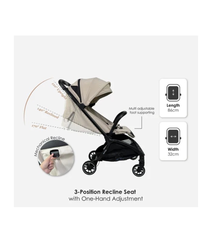 • Three-Level Recline: Versatile positioning ranging from an upright view for toddlers to a near-flat recline for peaceful on-the-go naps.