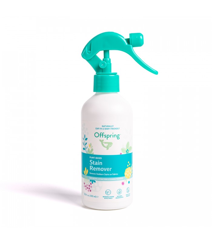 Offspring Plant-Based Baby Stain removes the toughest baby stains while gently protecting and disinfecting fabrics with a safe and baby-friendly formula.