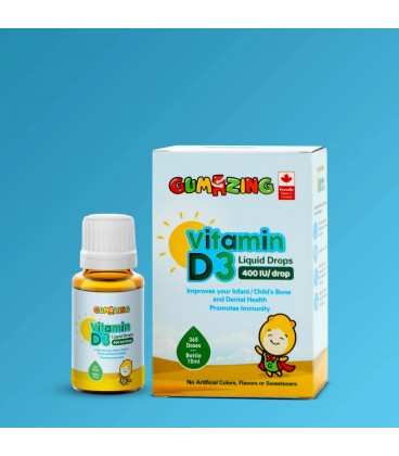 Gumazing Vitamin D3 Drops are formulated to provide your child with the essential Vitamin D3 needed for healthy bone and teeth development. Each drop delivers a precise dose of Vitamin D3, ensuring that your child gets the optimal amount for their growth and development. These drops are easy to use, flavorless, and can be added to food or drinks, making it convenient for parents and enjoyable for kids.