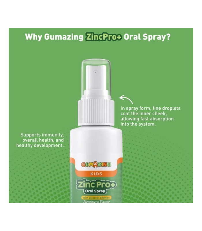 Gumazing ZincPro+ Oral Spray offers a simple way to support daily zinc intake in kids. The gentle spray format makes supplementation easy, comfortable, and stress-free.