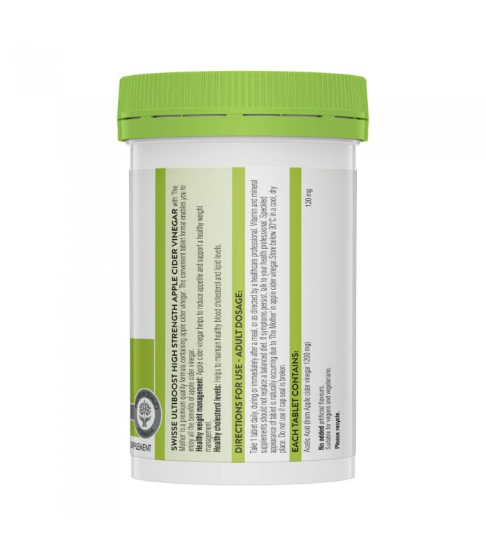 Swisse Ultiboost High Strength Apple Cider Vinegar with 'The Mother' is a premium quality formula containing apple cider vinegar. The convenient tablet format enables you to enjoy all the benefits of apple cider vinegar.