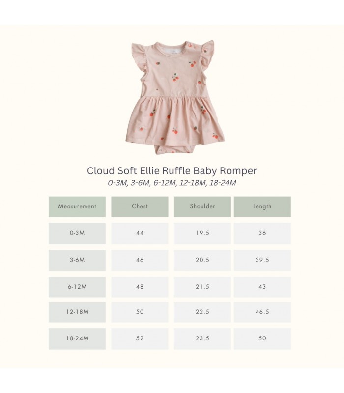 Designed for sunny days and little adventures, Mellow's Ellie Ruffle Baby Romper brings a touch of sweetness to every outing. Made from our signature Cloud Soft TENCEL™ Modal, Cotton and Elastane blend, it feels luxuriously smooth while keeping its shape — perfect for going out, playing, and exploring in comfort.