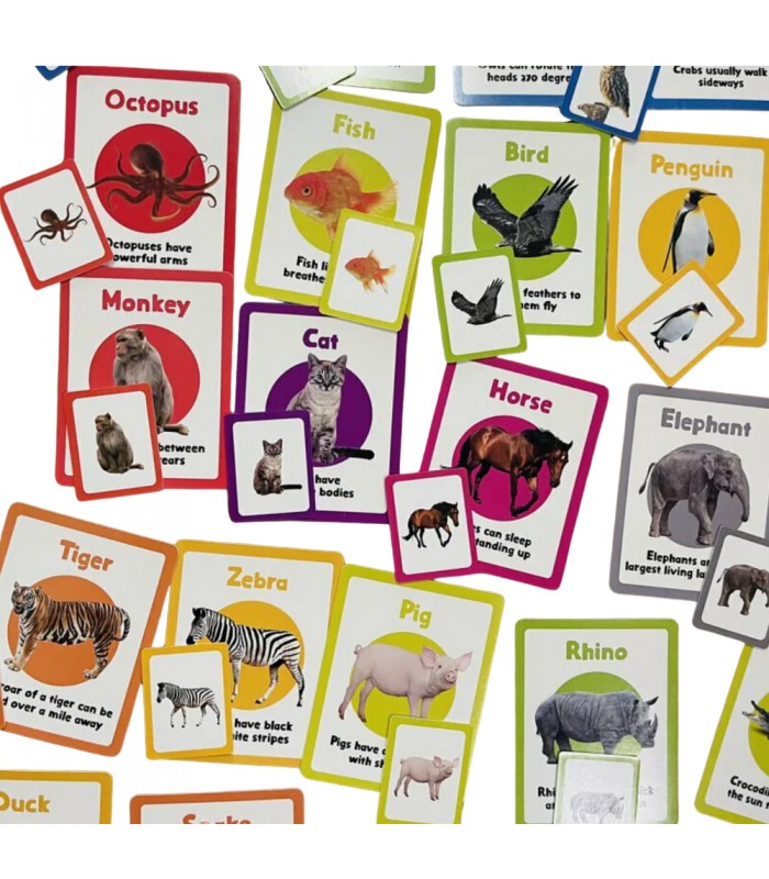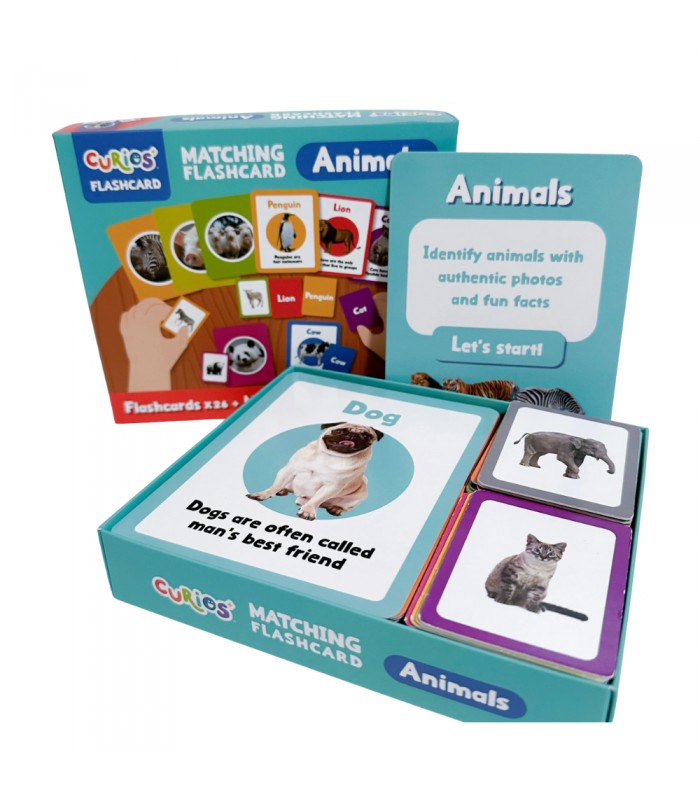 With Curios Animals Matching Flashcards, children learn 26 animal names step by step through an engaging matching game, expanding their vocabulary while having fun! This set includes large flashcards and matching game cards designed for progressive learning.
