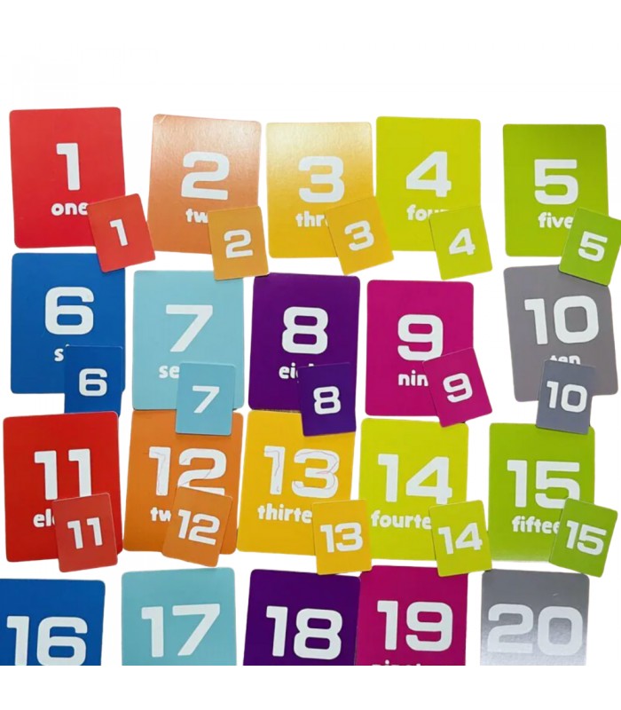 26 matching game cards – Front: Numbers 0-20, even/odd numbers, addition & subtraction symbols | Back: Corresponding counters for quantity recognition