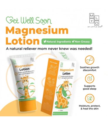MyLO GWS Magnesium lotion offers natural support for your babies' and kids' health by promoting calmness, muscle relaxation, and restful sleep. Applied topically, it’s gentle on little one's skin and helps supplement magnesium levels easing muscle tension and supporting a balanced mood.