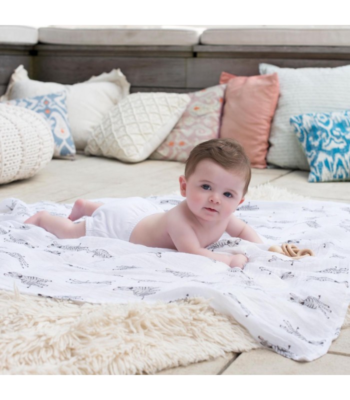 Breathable and snuggly soft, our 100% cotton muslin baby swaddle blankets ensure little ones' comfort and parents' peace of mind. Our baby swaddle blankets are generously sized, which not only makes it easier to swaddle with them, but it also makes them incredibly versatile.