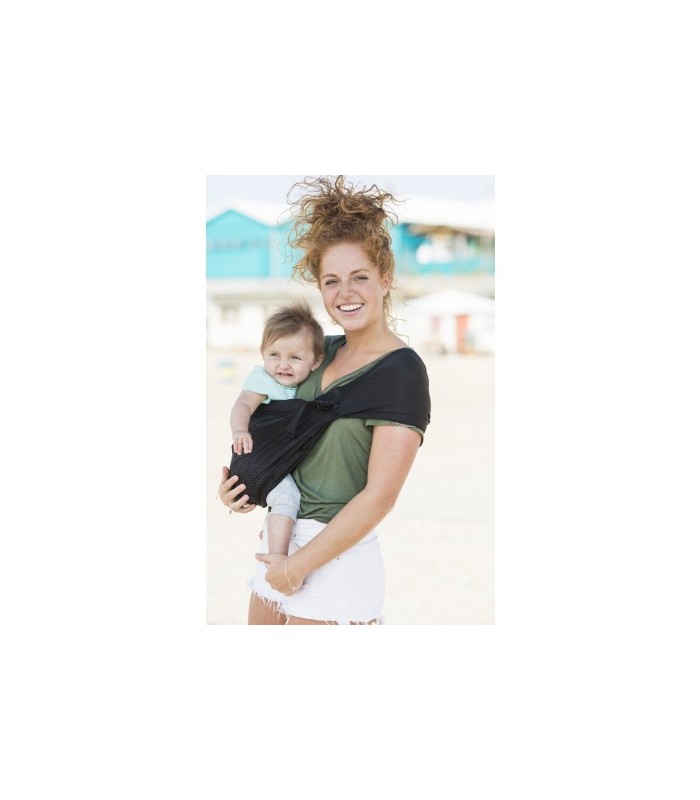 The Mini Sling is not water tight, but it is waterproof, so you can get it wet. And once wet, it dries again within 30 minutes. This makes it the ideal baby carrier to use in the shower, on the beach or at the pool. The sling is made out of a mesh fabric, so as well as being waterproof, it is very light and airy, making it ideal for warm days. In short, the Mini Sling is a must-have if you take your ‘little monkey’ on a trip!