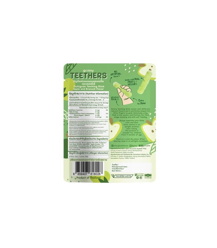 GRINNY Multigrain Teething Sticks are melt in the mouth and suitable for babies aged above 9 months. Made from Organic Brown Jasmine Rice and 100% natural ingredients, Grinny Teething Stick comes with different natural flavors and is perfectly shaped for little fingers to grab. Deliciously crisp, Easily Dissolved, and Perfect for first stage snacking and safe self-feeding.