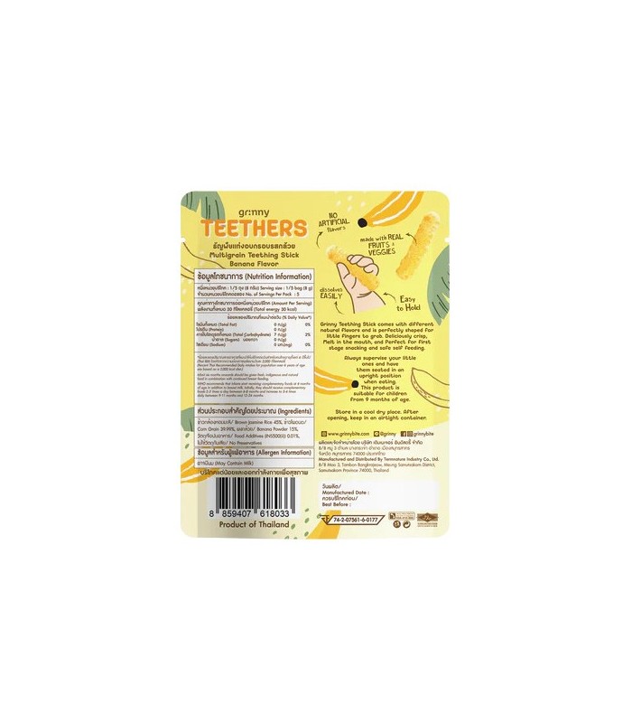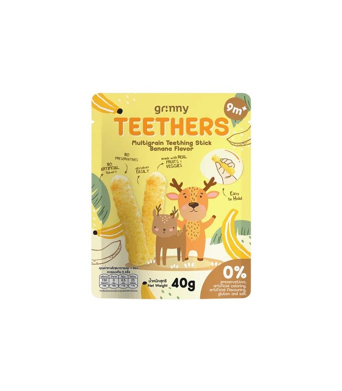 GRINNY Multigrain Teething Sticks are melt in the mouth and suitable for babies aged above 9 months. Made from Organic Brown Jasmine Rice and 100% natural ingredients, Grinny Teething Stick comes with different natural flavors and is perfectly shaped for little fingers to grab. Deliciously crisp, Easily Dissolved, and Perfect for first stage snacking and safe self-feeding.