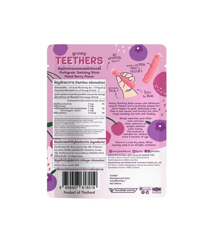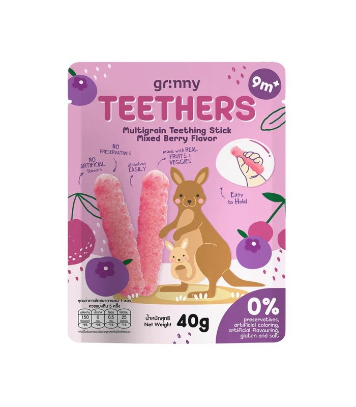 GRINNY Multigrain Teething Sticks are melt in the mouth and suitable for babies aged above 9 months. Made from Organic Brown Jasmine Rice and 100% natural ingredients, Grinny Teething Stick comes with different natural flavors and is perfectly shaped for little fingers to grab. Deliciously crisp, Easily Dissolved, and Perfect for first stage snacking and safe self-feeding.