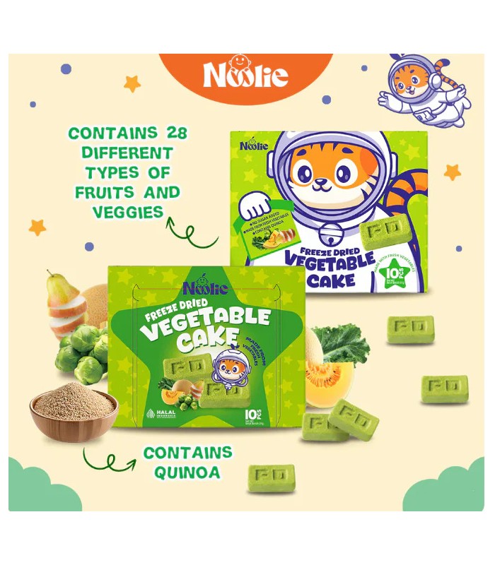 Made with 28 fruits and veggies including broccoli, kale, brussel sprouts, and superfood quinoa all in one bite, our Vegetable Cakes are formulated using advanced freeze-drying technology to preserve essential nutrients. These crunchy cakes are not only delicious but also loaded with fiber and gut-friendly prebiotics. A win-win for parents and kids!