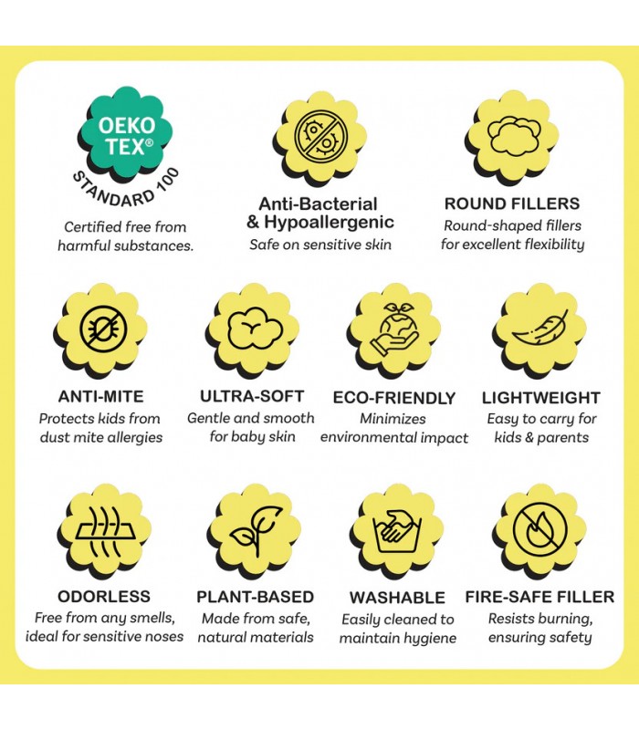 Bed-Time Buddy™ is crafted from exceptionally soft fabrics designed to enhance comfort and be gentle on the skin. This ensures a soothing touch that is perfect for a good night's sleep and comforting snuggles throughout the day.