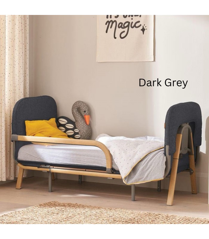 The CoZee XL junior bed and sofa expansion pack in oak and charcoal offers the functionality to convert the previous cot mode into a toddler bed that can be used up until the age of four, and ultimately into a sofa, which makes for a fun addition to your child's bedroom.
