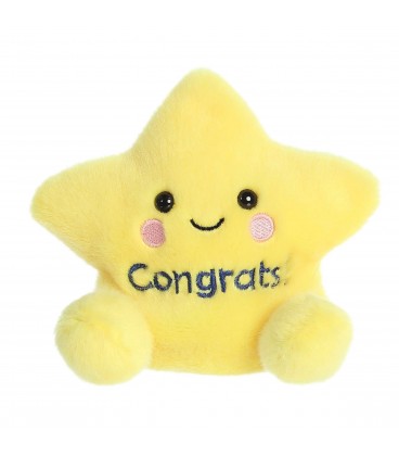 Galileo Congrats Star is a plush in the shape of a radiant golden star with the word "Congrats" embroidered in a deep blue, celebrating every accomplishment.