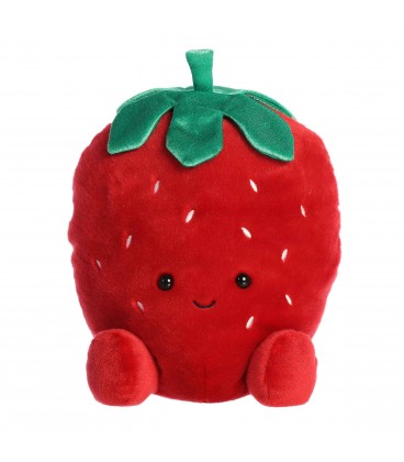 Meet Juicy Strawberry, a larger-than-life and utterly sweet member of the larger Palm Pals. This plush strawberry is designed with a vibrant red body sprinkled with seed-like spots and topped with a fresh green leaf cap, perfectly capturing the essence of a ripe, juicy strawberry.