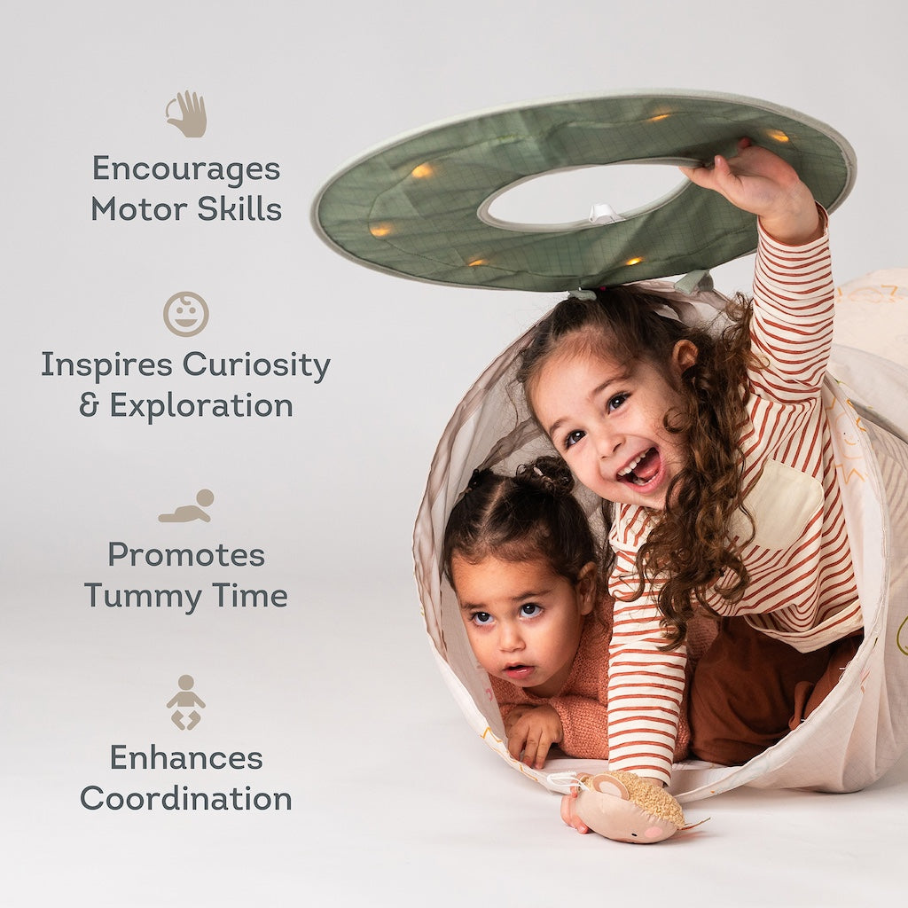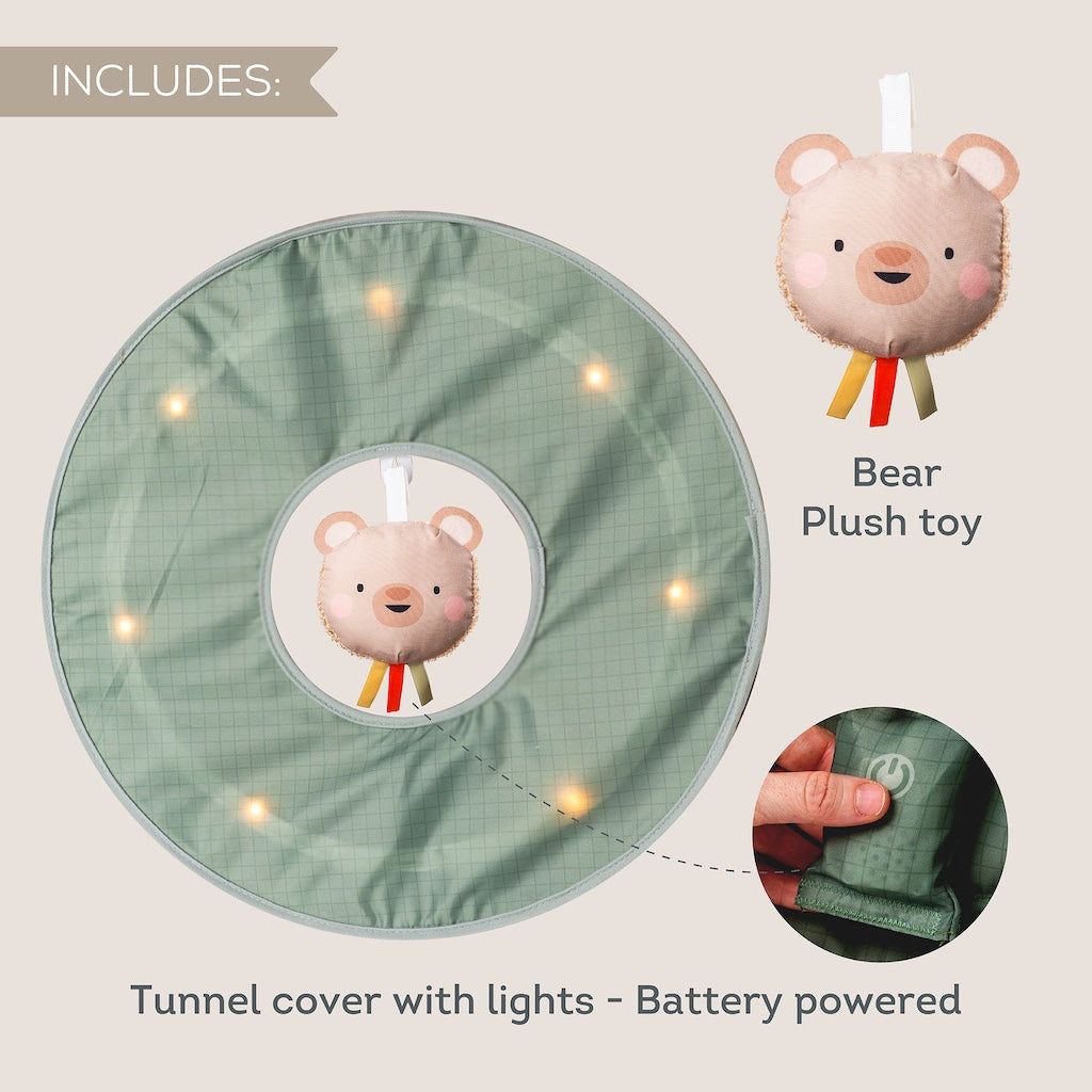 Designed to captivate curious babies, our 120cm Glow & Crawl Tunnel engages multiple senses. The cozy, covered space features soothing, twinkling lights that draw toddlers in to encourage exploration and crawling. An included plush bear adds tactile play, inviting little hands to reach and grasp. With two light modes, the tunnel sparks imagination and supports early motor development through playful discovery.