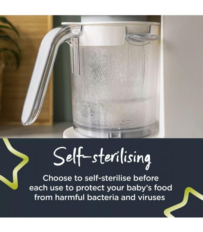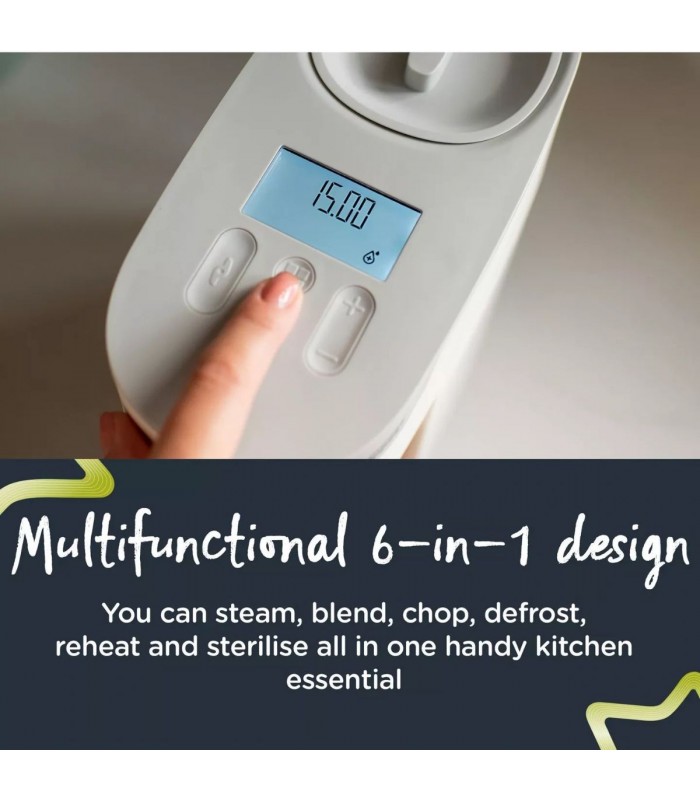 Weaning your baby is a big milestone, and the Tommee Tippee Quick Cook Baby Food Maker makes it simple and stress-free. This smart 6-in-1 appliance lets you steam, blend, chop, defrost, reheat, and sterilise in one compact unit — perfect for every stage of your baby’s weaning journey. From smooth purées to chunkier meals, it’s designed to preserve essential nutrients and flavours while giving you full control over ingredients. The 500ml jug prepares up to four portions in just 10 minutes, helping busy parents save time while ensuring fresh, healthy meals. Easy to assemble and clean, the jug, lid, and basket are dishwasher-safe, while the rest can be wiped clean. Its self-sterilising function protects your baby from harmful bacteria and allows you to sterilise accessories like teats or soothers. With the Quick Cook, mealtimes become quick, easy, and nutritious — so you can focus on enjoying the journey.