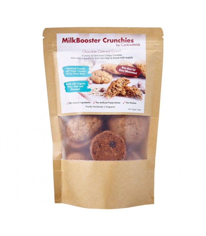 Yummy & Delicious Crispy Cookies With Key ingredients that can help to boost milk supply. Improved Formula with Virgin Coconut Oil for Extra Boost. Made with Organic Flour, Oats and Flaxseed. Bite-sized for busy mummies!