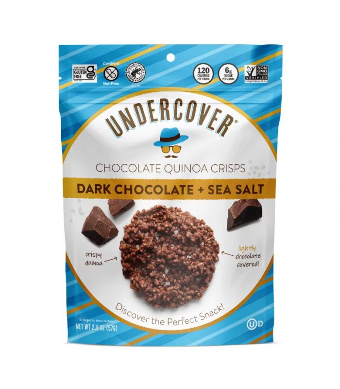 Ingredients: Dark Chocolate (Cacao Beans, Pure Cane Sugar, Cocoa Butter, Sunflower Lecithin, Vanilla Beans), Quinoa, Sea Salt.