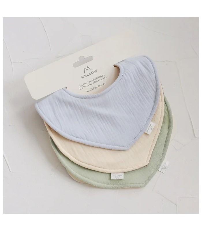 A set of three well loved Reversible Dribble Bibs in lovely colourway. Each of them is reversible, absorbent and triple layered bib made from the softest cotton gauze. The back features an adjustable snap buttons to best fit your little one.